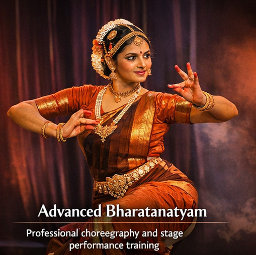 Professional Bharatanatyam certification and Arangetram preparation available.